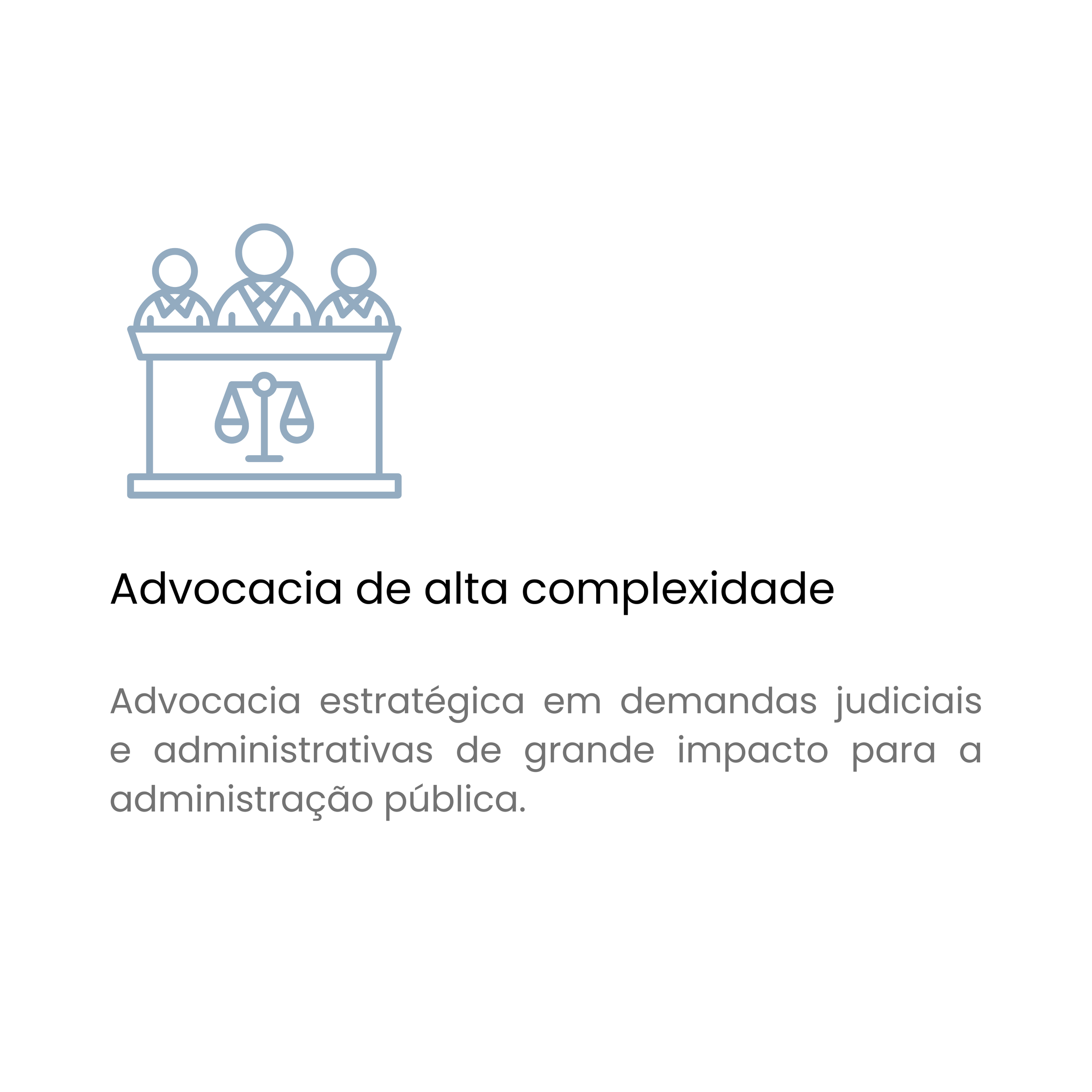 Assessoria jurídica estratégica em assuntos de alta complexidade, oferecendo soluções personalizadas para demandas sensíveis, contenciosos críticos e questões regulatórias desafiadoras.