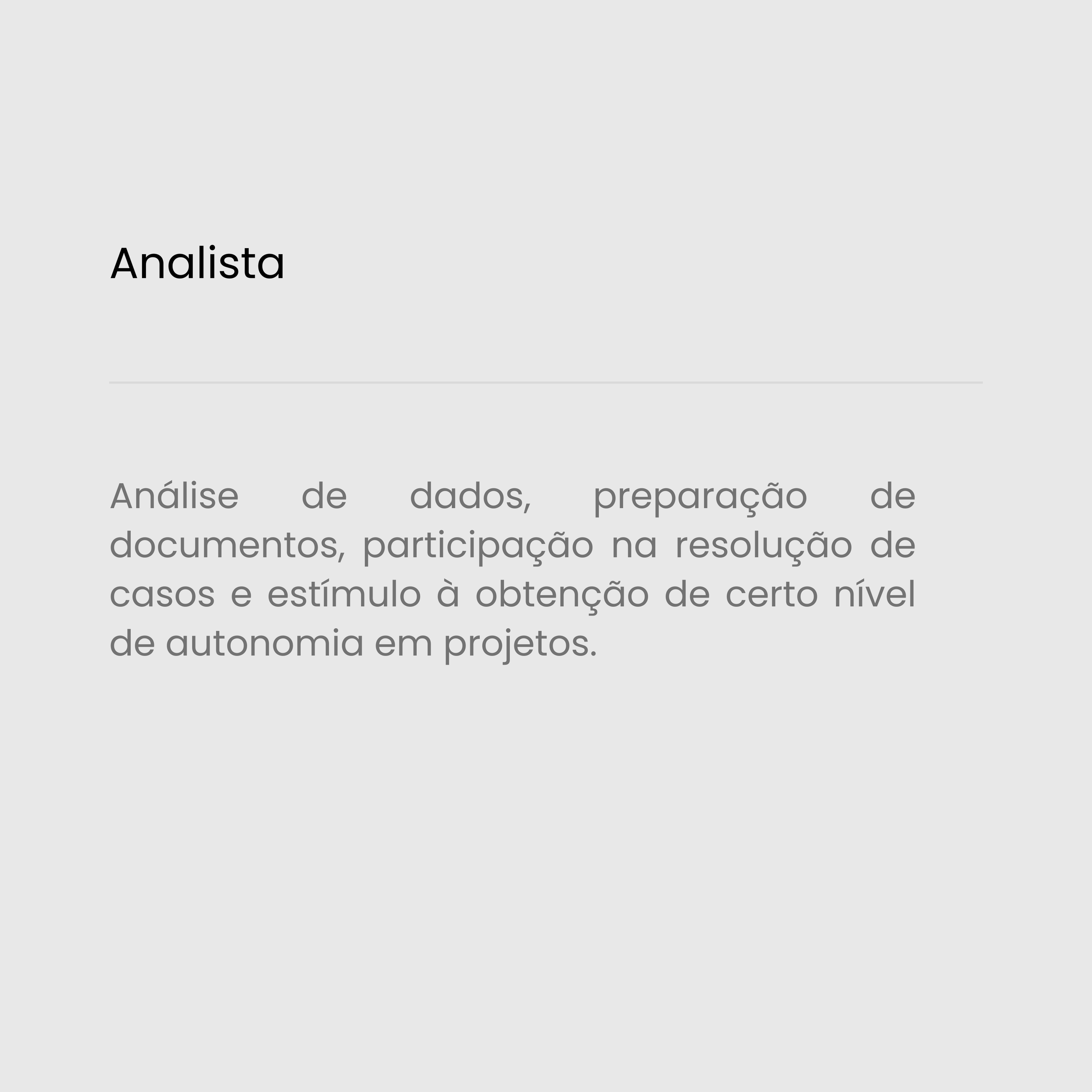 Nosso plano de carreira é estruturado para você tenha uma visão clara de cada uma das etapas da sua trajetória e do que precisa para percorrê-la.